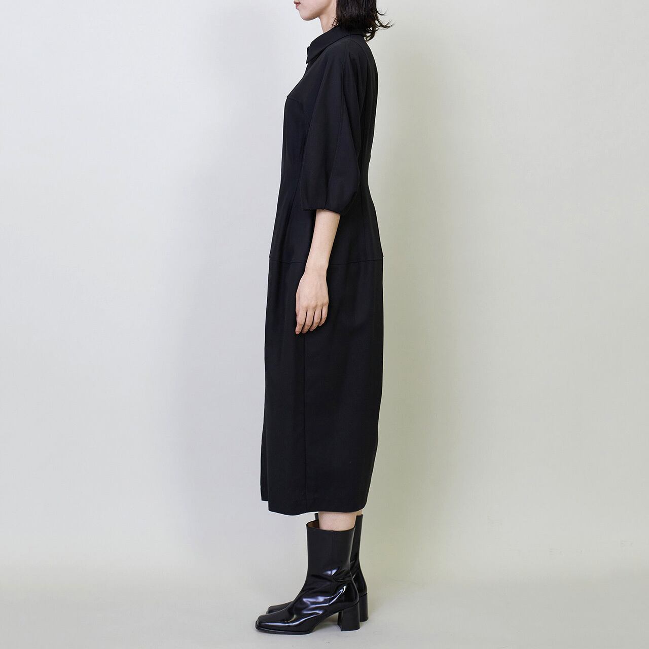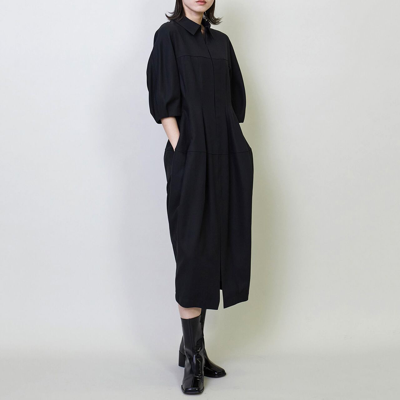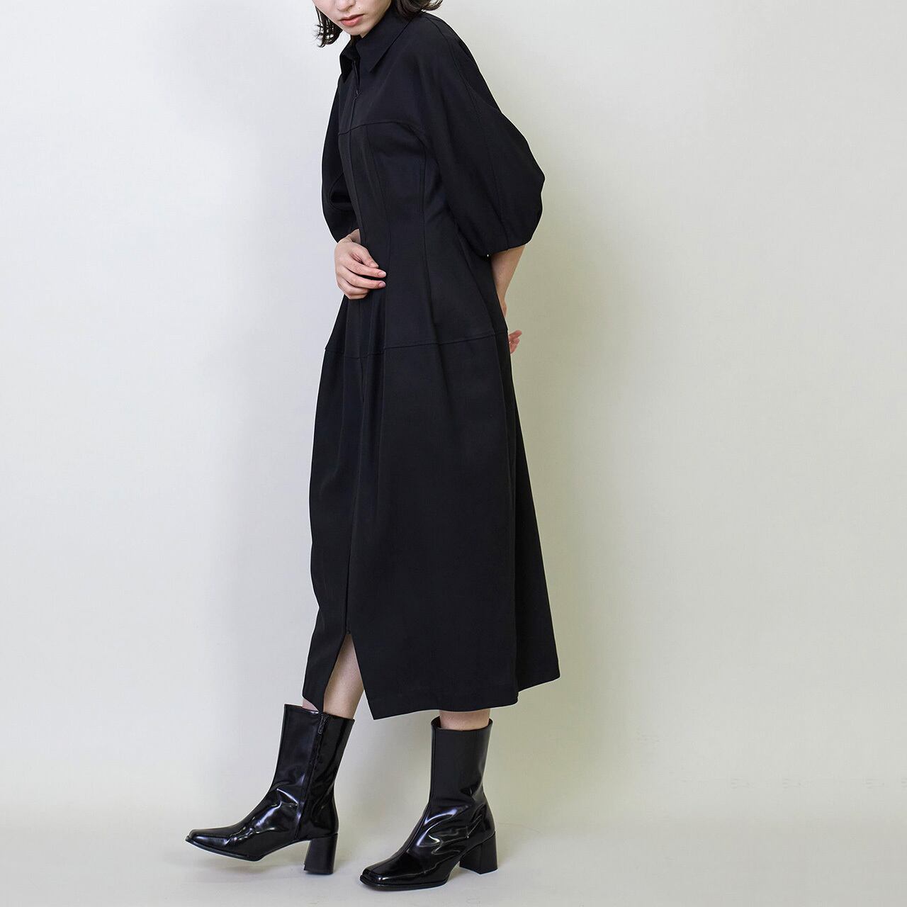 ウエストを絞りスカート部分にはたっぷりとした分量を出し、ファスナー開きでスポーティーな部分もありつつ、全体はエレガントなシルエットで仕上げました。羽織りとしても、ドレスとしても着用できます。