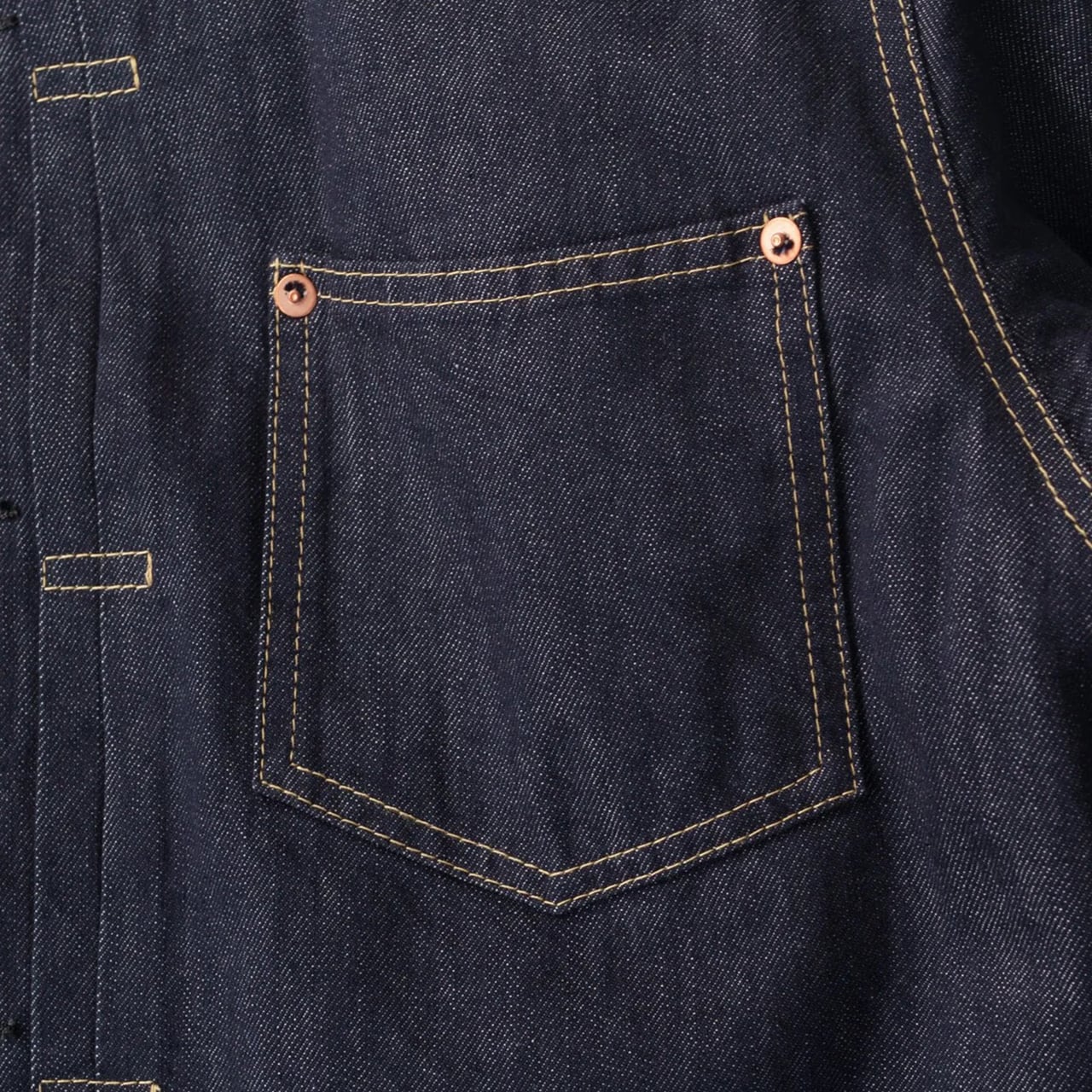・表地は柔らかな風合いの9ozデニム。インディゴタイプは色落ちしない染料で染めた経糸が使用されていて、経年変化を気にせず、クリーンな印象をキープできます。